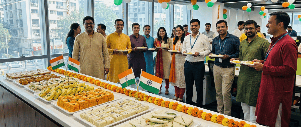 Encourage everyone to show up in their best ethnic wear. Kurtas, sarees, or even a tricolor accessory challenge. It changes the atmosphere instantly. When the team looks good, the mood lifts automatically. Plus, it’s a great excuse for a team photoshoot.