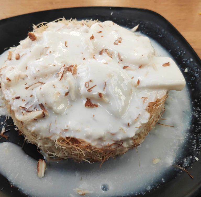 Khunafa traces its roots back to the ancient streets of the Levant, where it was crafted with hands that knew the art of blending cheese and pastry. It’s a dessert born out of love and patience, requiring just the right balance of sweetness and texture. Often served hot, it brings comfort to those who savor it, like a warm hug on a chilly night.